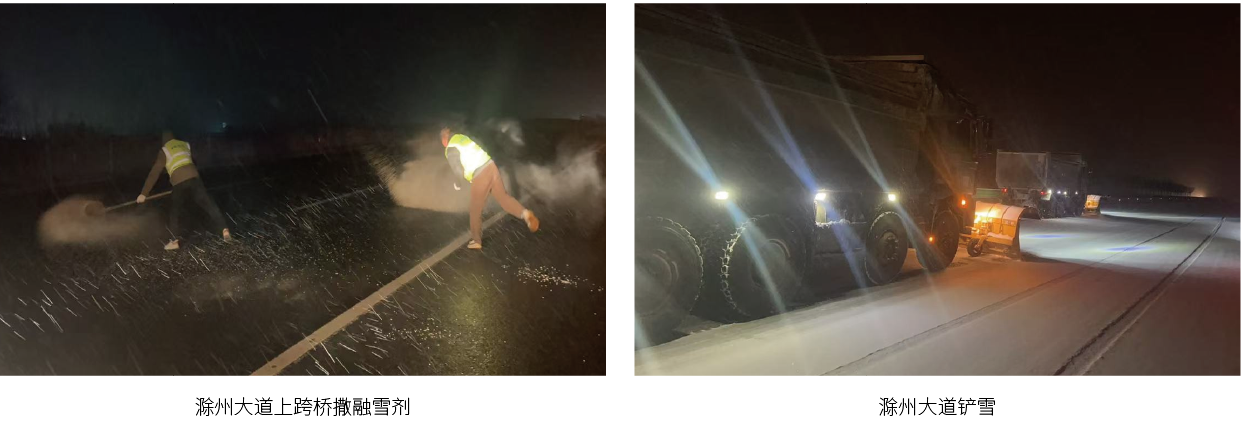 雪情在前,责任在肩,公司各应急队伍迅速集结,按照职责分工紧密协作,凝聚起抗击冰雪的强大合力。应急人员顶着凛冽寒风,昼夜坚守在除雪保畅一线,在辖区国省干线和主要县道,对急弯、陡坡、桥梁和平交道口进行撒布融雪剂和除雪作业。截至2026年1月20日上午,公司共出动应急人员85人次、应急巡查车辆10辆、铲雪车7辆、融雪剂撒布车5辆、轮挖2台、铲车1台,输送机1台,融雪剂45吨,对S210盛大装饰城至S324、S324十字至西王、S326以南片区至县乡公路、滁州大道、S210腰铺至S324、S326以北片区至县乡公路、S213西王至大墅、S326全线等包保路段进行重点清理,最大限度减少降雪对春运安全通行造成的影响。